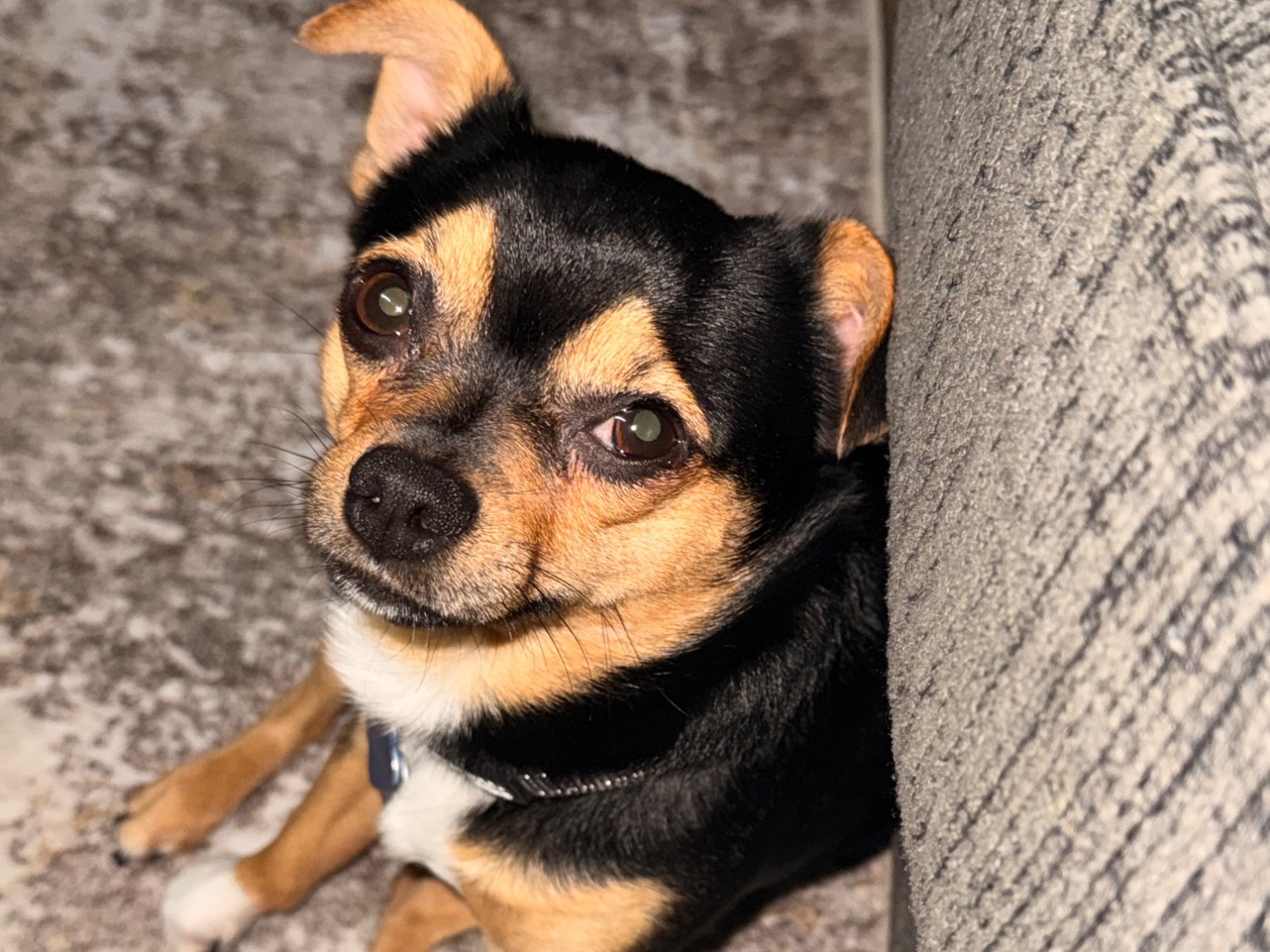 Leo is the apittimy of a Chihuahua. Small but mighty. He definitely thinks he's a pit bull, he's all bark and no bite. He loves to play and is intimidated by bigger dogs, wants sooo badly to play with a cat but none have oblige. Loves attention and is a bit of a cry baby, if you don't sit with him on the couch. Loves to cuddle while your chillin.